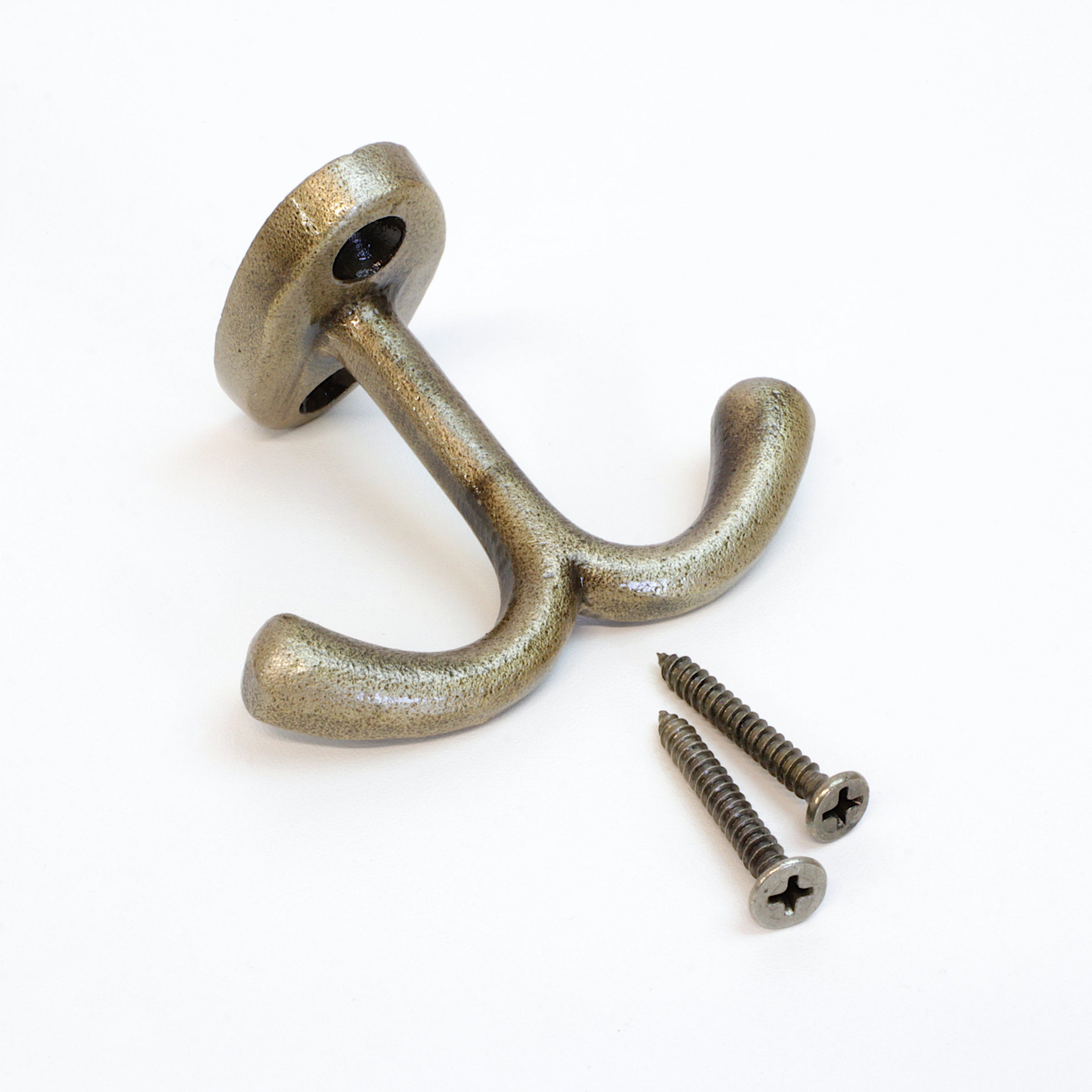 Casted with high quality iron, the Admiral undermount hook is a great way to create a sturdy and stylish solution to clutter in your bathroom, kitchen, entryway, or wherever you decide. The sleek and simple design of this double hook makes a functional yet complementary addition the underside of mantels, counters, or tables. Can be used as a ceiling swag hook for pendant light fixtures, but it's so versatile it can be used as a ceiling hook for plants, as under cabinet mug hooks, even for hanging pots and pans on in the kitchen. Regardless of what you have in mind, the Admiral hook is great for adding extra storage capacity to an entryway bench, the underside of shelves, and so much more. It's easy to coordinate this hook to match the rest of your hardware since it is available in some of the most on-trend finishes, and comes with matching screws so you can start decorating right out of the box.