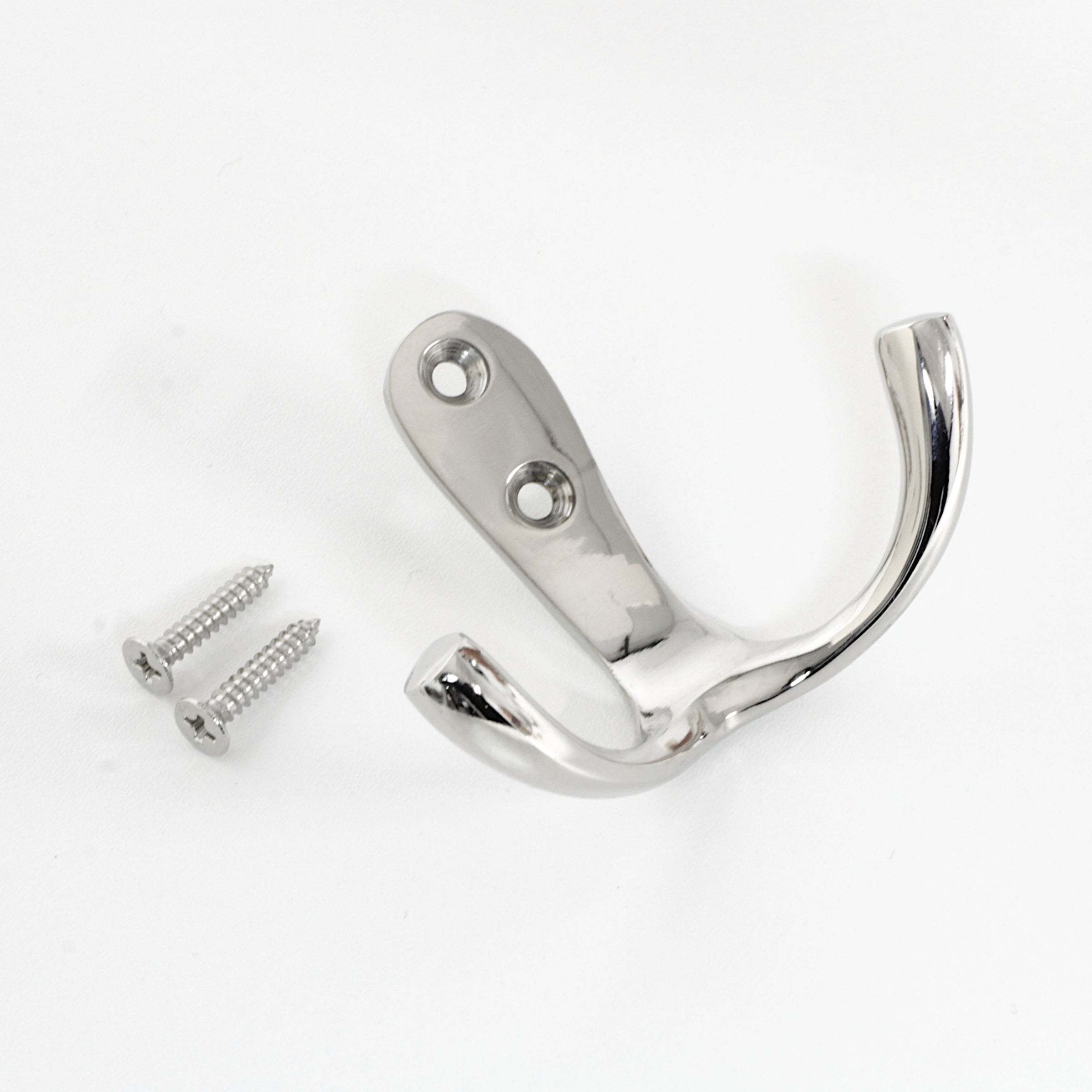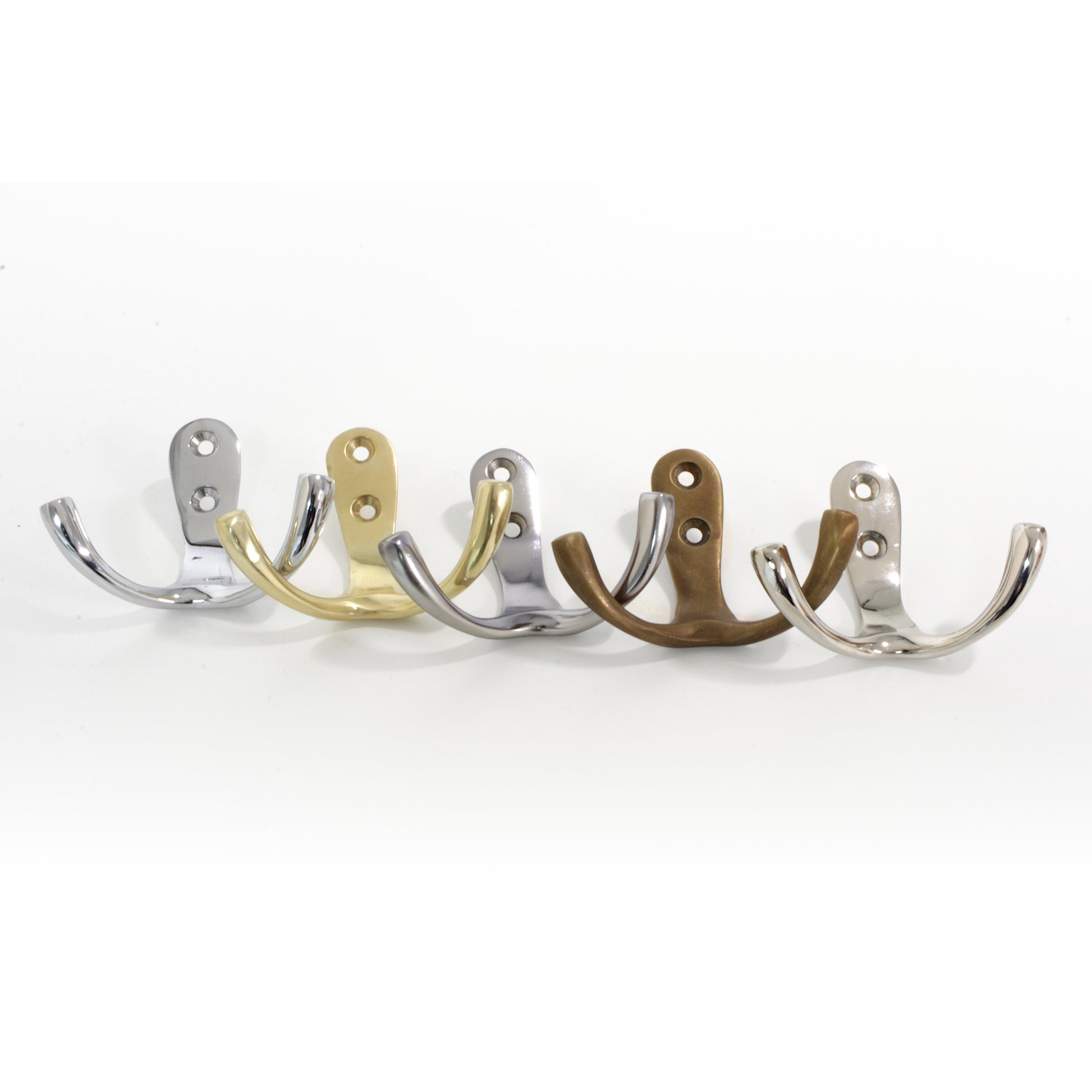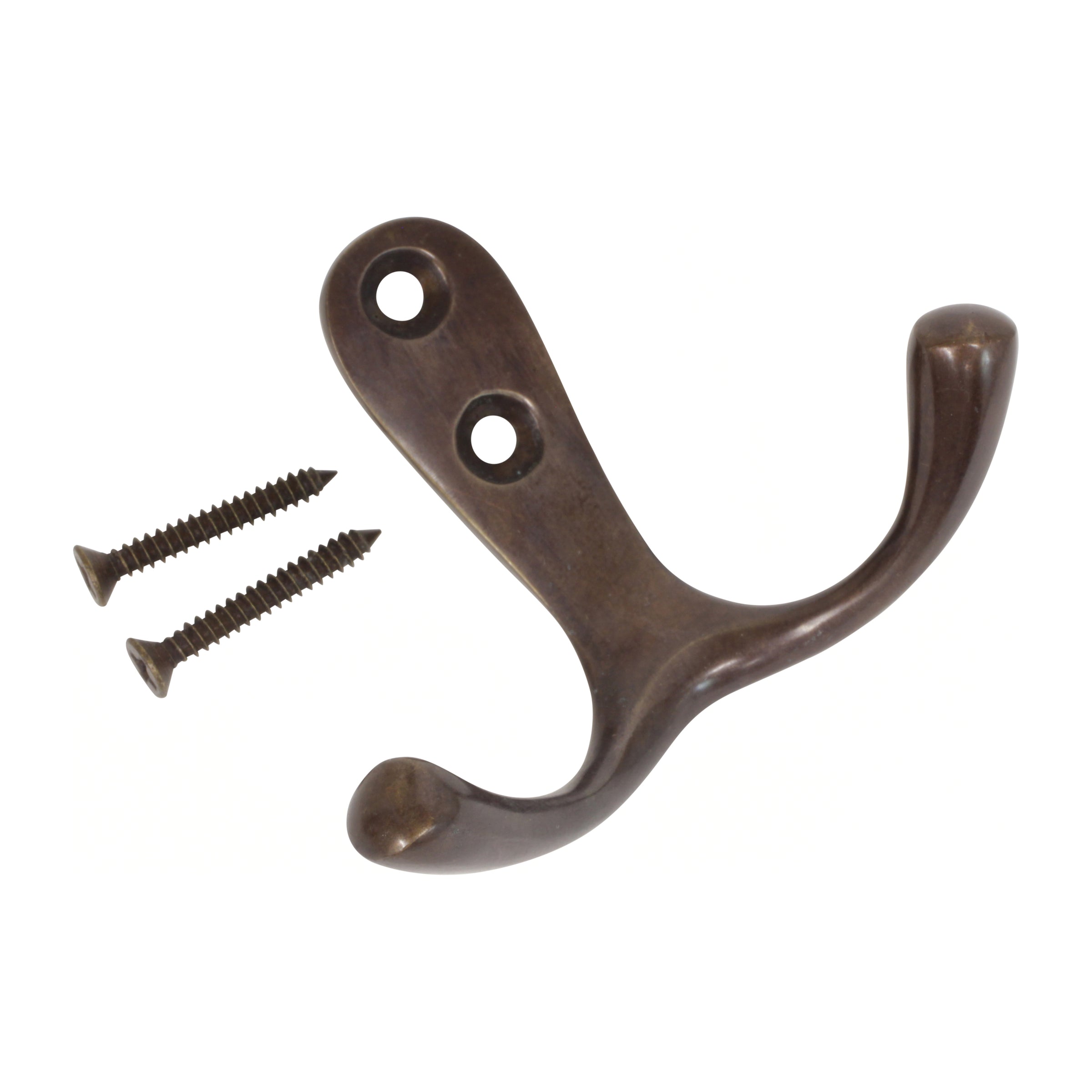 Hang up your favorite robe or maximize your closet space with our classic brass Duo hook. This double wall hook is as sturdy as it is stylish - and with 2 spacious hook arms, it's ideal for tackling clutter and improving organization in your entryway, kitchen, bathroom, bedroom, and closet. Since brass is naturally rust and corrosion resistant, this hook is great for indoor and outdoor uses. Its sleek design complements any decor type, and since the Duo is available in multiple hardware finishes, you can't go wrong with this hook! Spread these around your home wherever you need extra space to hang bath towels, robes, hand towels, and pot holders - or line them up for a convenient coat rack effect to hang your keys, coats, dog leashes, and hats. Each hook arrives with matching screws to make decorating a snap right out of the box.