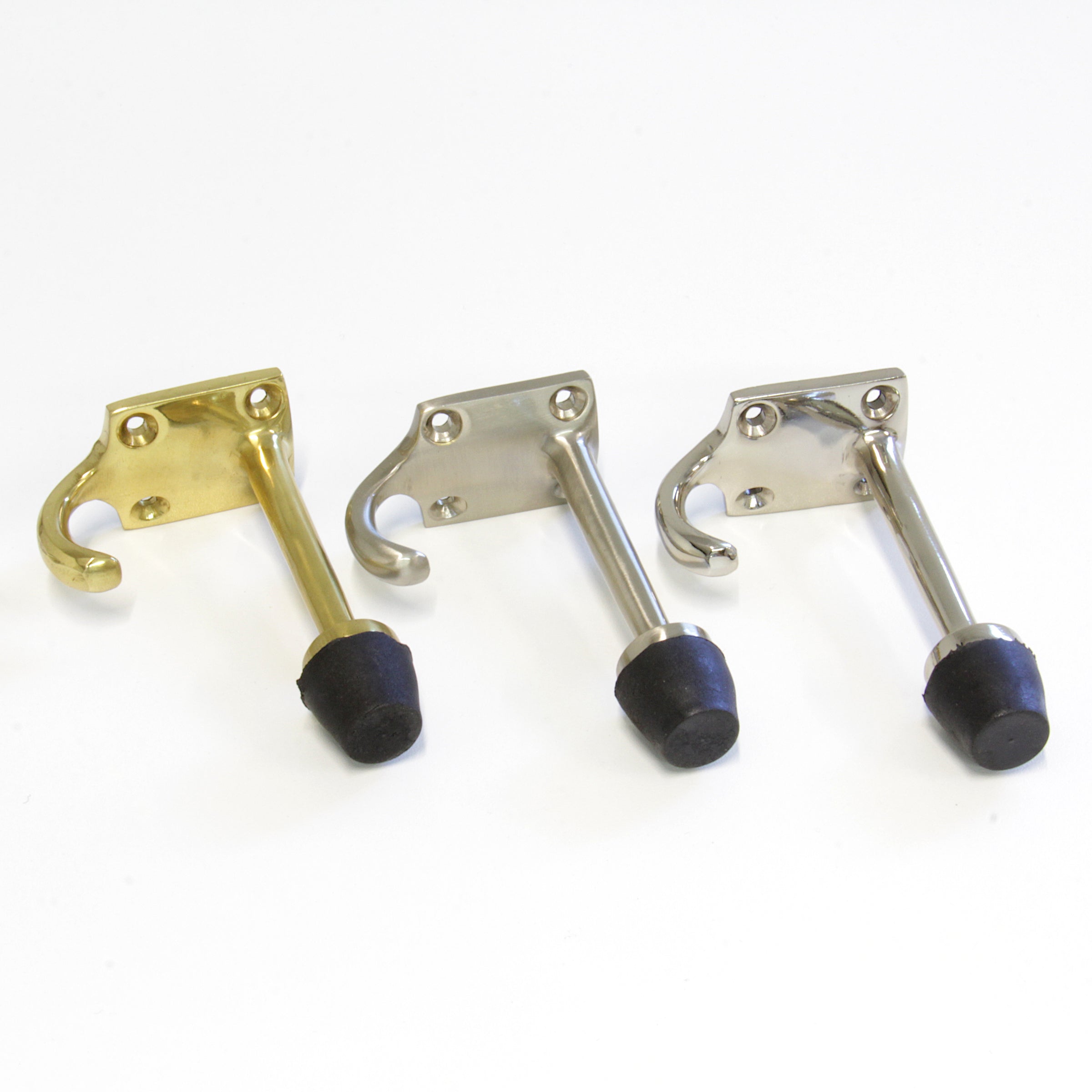 Just as a shield protects its wearer, the brass Shield wall hook will protect your walls from dents and marks left by doors. With a doorstop protruding over 3.5 inches above a convenient hook, it's great for indoor and outdoor use since brass is naturally rust and corrosion resistant. Perfect to hold spare pairs of keys, dog leashes, umbrellas, and so much more. Since this hook is available in multiple hardware finishes, you easily can coordinate this hook to match the rest of your home. This hook is durable enough to be used outside and in the garage but stylish enough to be used behind the front door, in bathrooms, bedrooms, mudrooms, and storage closets. Each hook arrives with matching screws to make organizing a snap right out of the box.