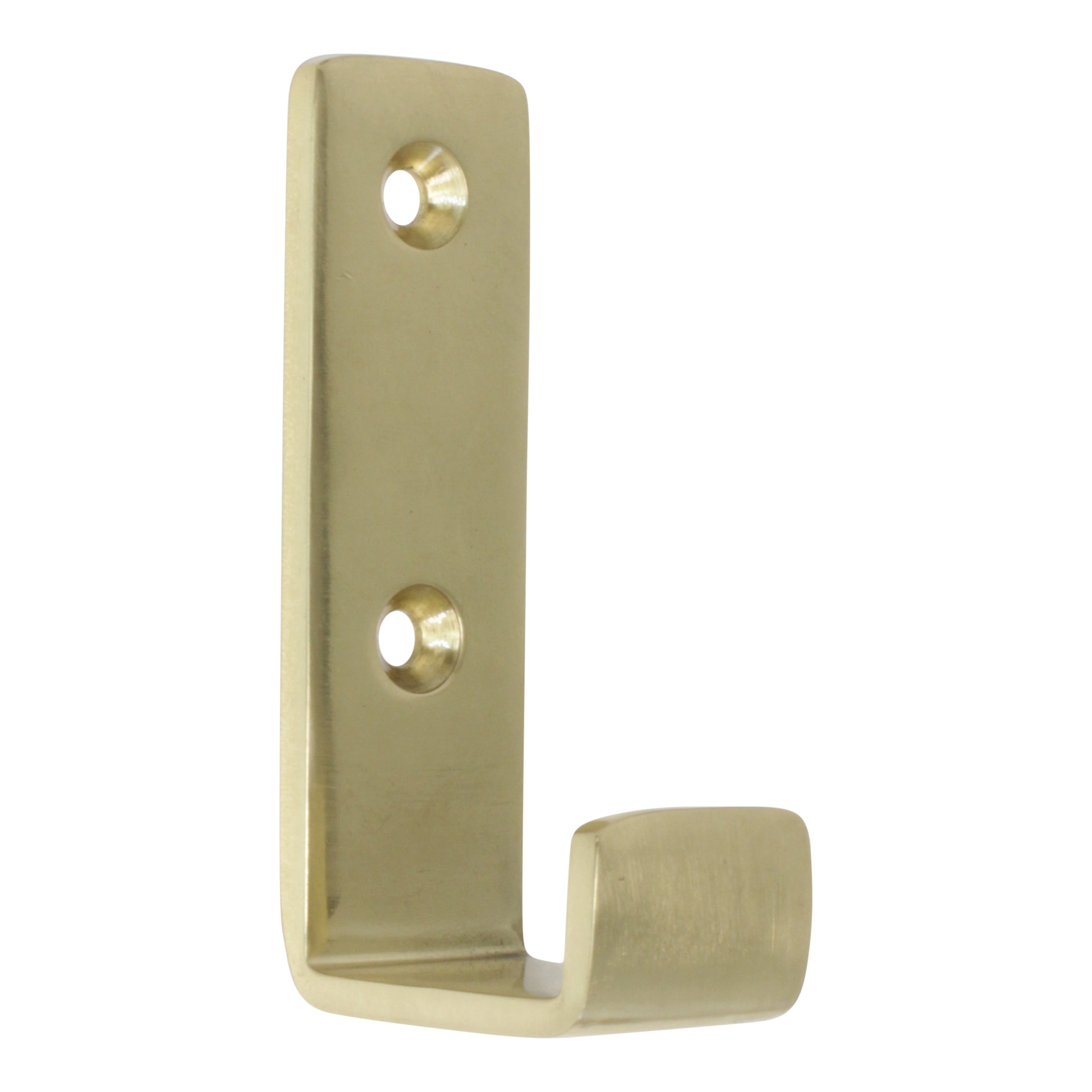 Made from high quality solid brass, the Brass Single hook is as sturdy as it is stylish. Since brass is naturally rust and corrosion resistant, this hook is great for indoor and outdoor uses. Great minimalist hook to use by the front door for hanging coats and dog leashes, in the bathroom for hanging towels and robes, in the kitchen for hanging hand towels and aprons, or in closets for organizing and maximizing storage space - the list goes on! Each hook arrives with matching screws that allow for instant, easy installation right out of the box. The simple yet modern design of this hook elevates any space while upgrading storage capacity. For a cohesive look, check out our matching Brass Angled and Brass Double hooks that are available in all the same finishes to simplify coordinating your wall hooks!