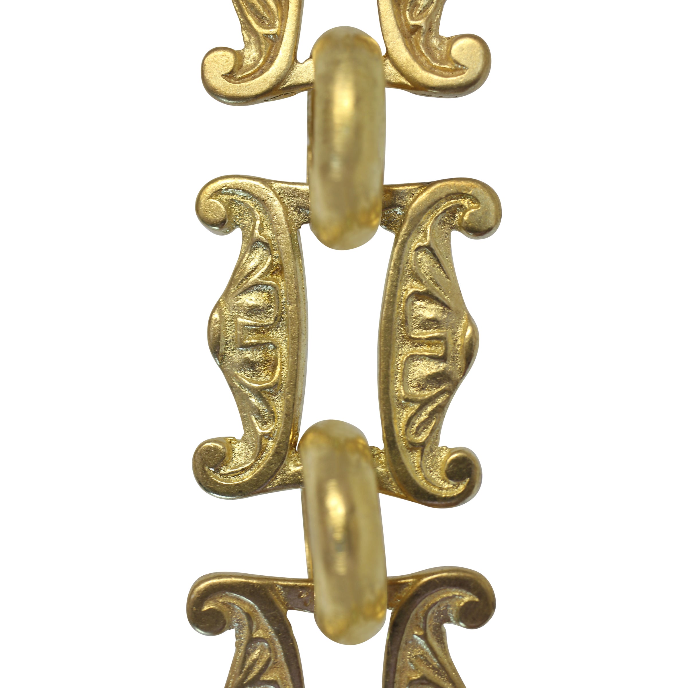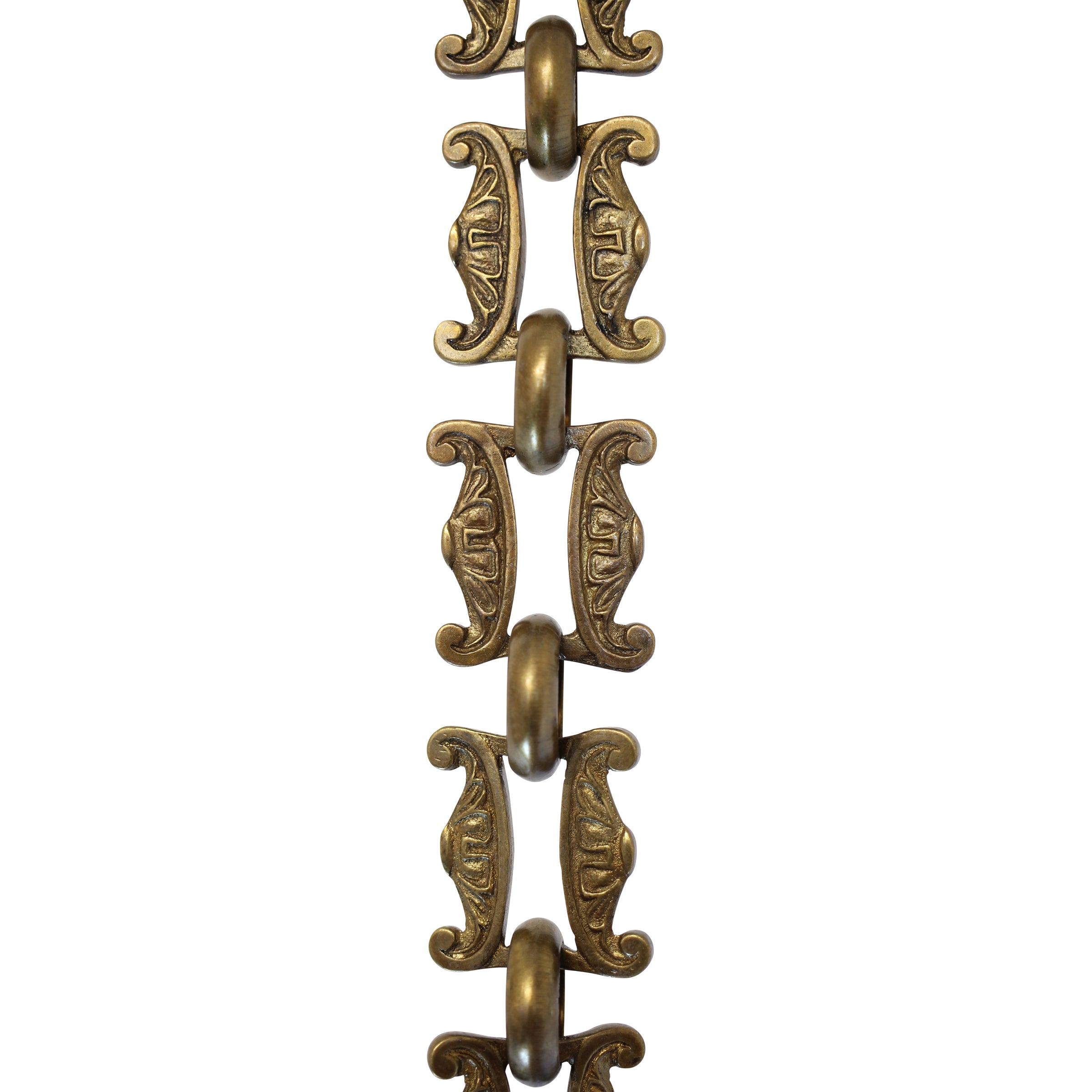Customize your fixture while showcasing your unique style with our decorative brass chain BR15-U. This chain is handmade with solid brass and is comprised of unwelded decorative links that are connected by welded circular links. This Victorian-inspired chain features the reciprocal floral motifs that form the flared shape, offering the perfect finishing touch for antique lighting and decor, but it's so universally appealing that it complements vintage, traditional, american colonial, farmhouse, and country cottage fixtures as well. This chain can support up to 20 lbs, and adds an intriguing visual element to lanterns, pendant lights, and hanging lamps without drawing attention from your fixture. The decorative links are unwelded so the length of the chain can be adjusted as needed - however, this chain must be hung by the circular connecting links, not the decorative links. The versatility of this chain cannot be overstated: besides use as a decorative lighting chain, BR15-U can also be used to hang indoor plants, picture frames, mirrors, wall decor, and even as curtain ties. Since brass is naturally rust-resistant, it can be used outside to add an elegant touch to hanging flower baskets, wind chimes, hanging outdoor signs, and other garden decor. Additional uses for this chain can be for crafts, costumes, and hobbies, as well as in home improvement and DIY projects. Available in multiple finishes, you can easily elevate any lighting fixture (literally!)