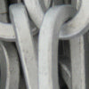 White is a matte finish that is completely non-reflective. This is a powder coating that is achieved by spraying the metal with a finely ground powder and then curing it with heat. The result is a hard matte finish that is completely uniform. We sell many of our steel chains with a white finish.
