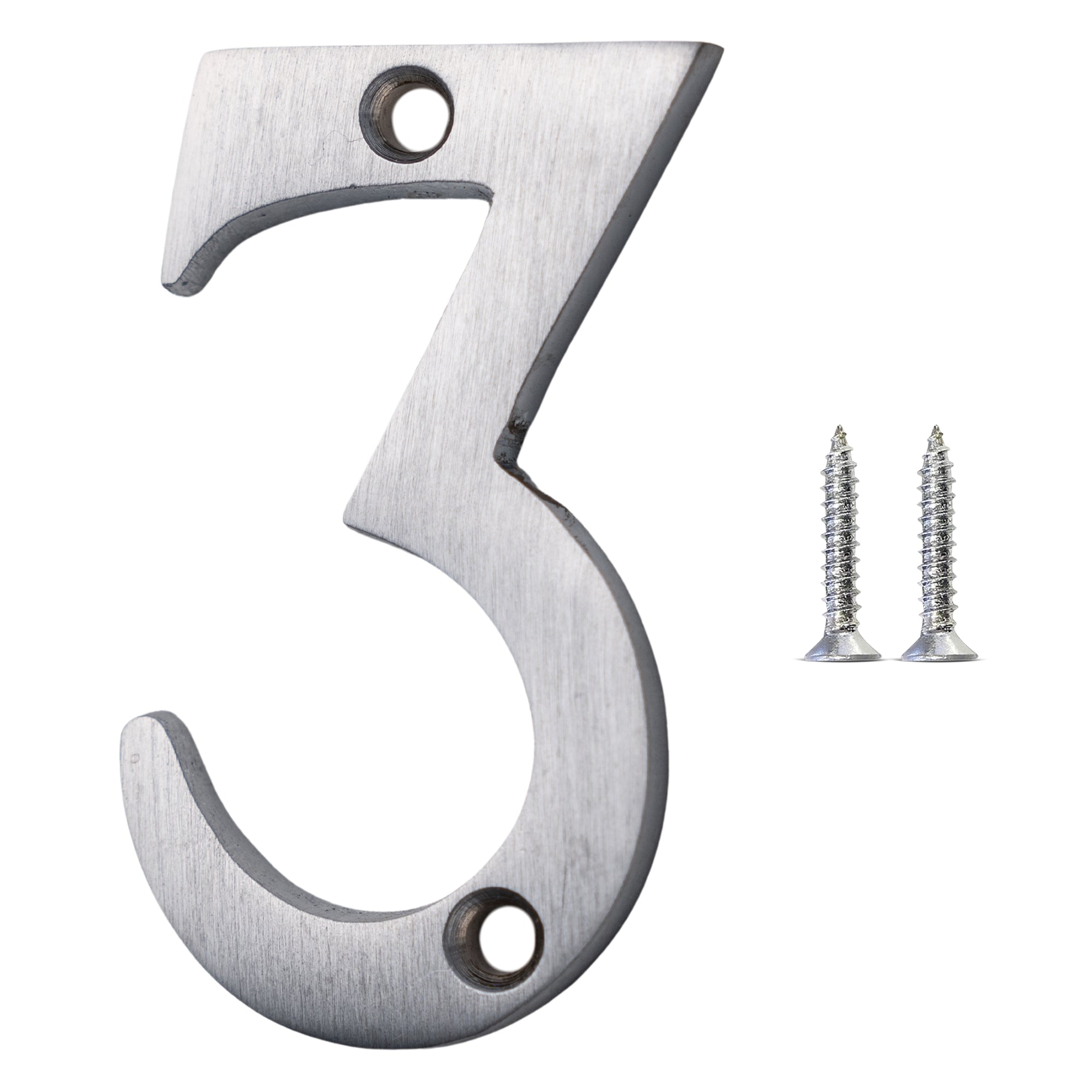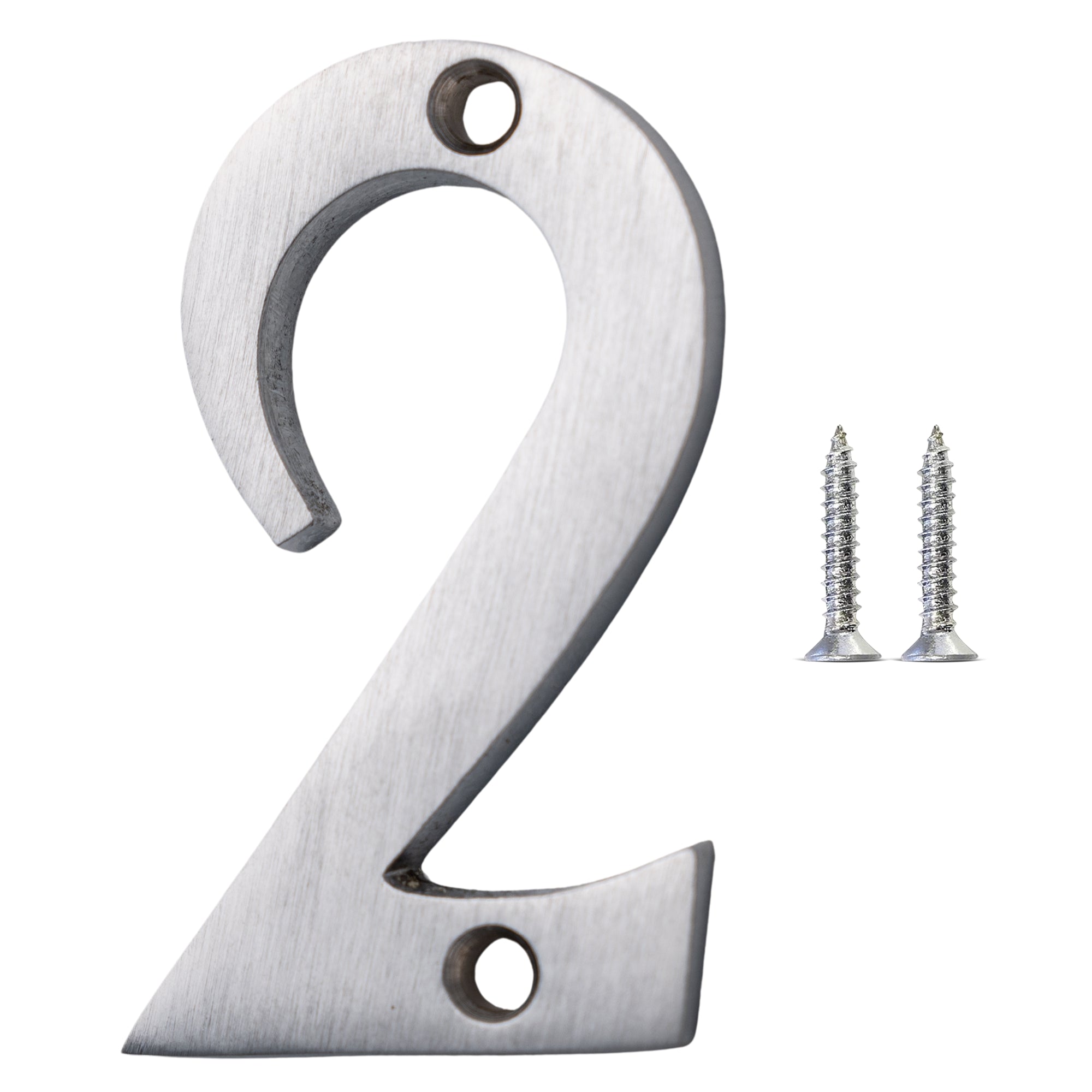 [Number BR235] Modern Small Serif House Number - Brushed Chrome Finish - 2 Inch