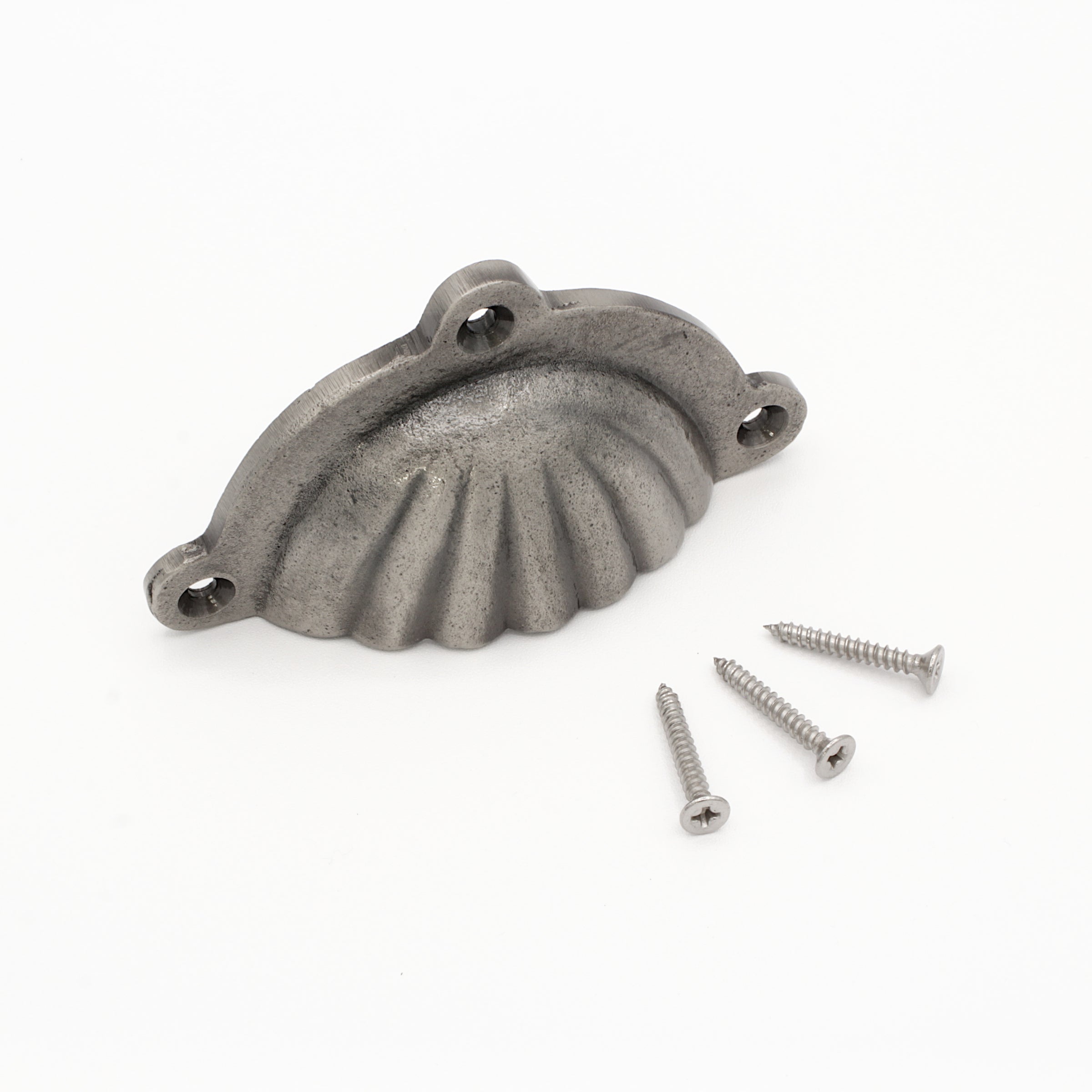 Refined style meets organic inspiration in our Iron Sea Shell cup pull. Influenced by its marine namesake, this pull features scalloped details along its domed face for an understated visual appeal, while the slightly textured surface provides a comfortable addition to the touch points around your home. This design pairs well with coastal interiors, but is so versatile that they also complement farmhouse, industrial, rustic, arts & crafts, vintage, traditional, and even bohemian aesthetics. Made of solid cast iron, these sturdy cup pulls are easy to grip and built to withstand the test of time. Since these pulls are available in multiple finishes, they're an easy way to showcase your personal style. Use these bin pulls on built in cabinetry in your kitchen, vanity storage in bathrooms, and dresser drawers in bedrooms, or to transform the look of your windows, end tables, nightstands, entertainment centers, and closets throughout your home. Perfect uses for DIY projects like woodworking, resin art, furniture upcycling, and so much more. Installation hardware is included with these front-mounting cup pulls, so you can easily add refined functionality to any space with just a few screw turns.